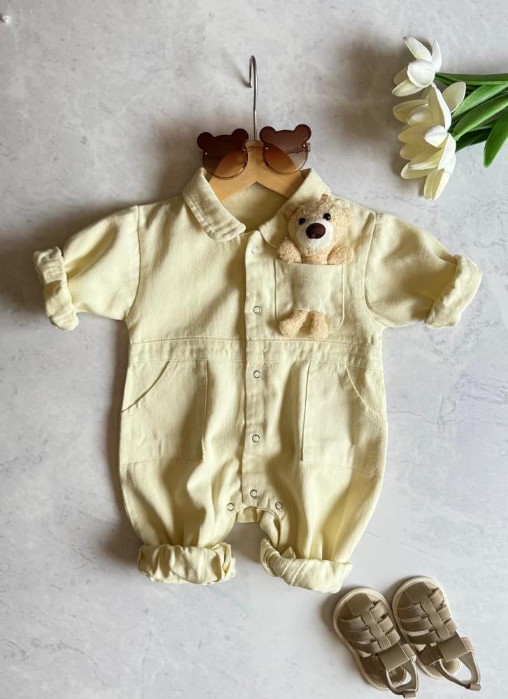 • يحتوي على تفاصيل لطيفة مثل الأزرار الصغيرة، مما يضفي لمسة جميلة على الطقم.