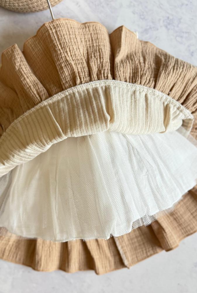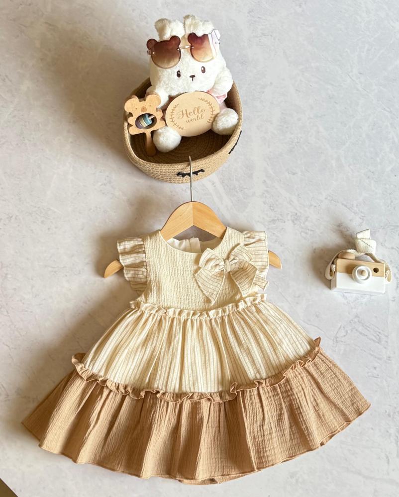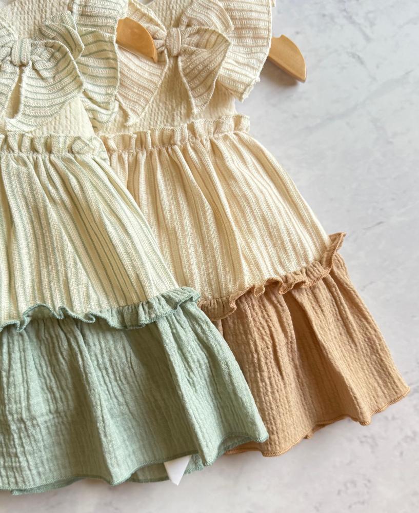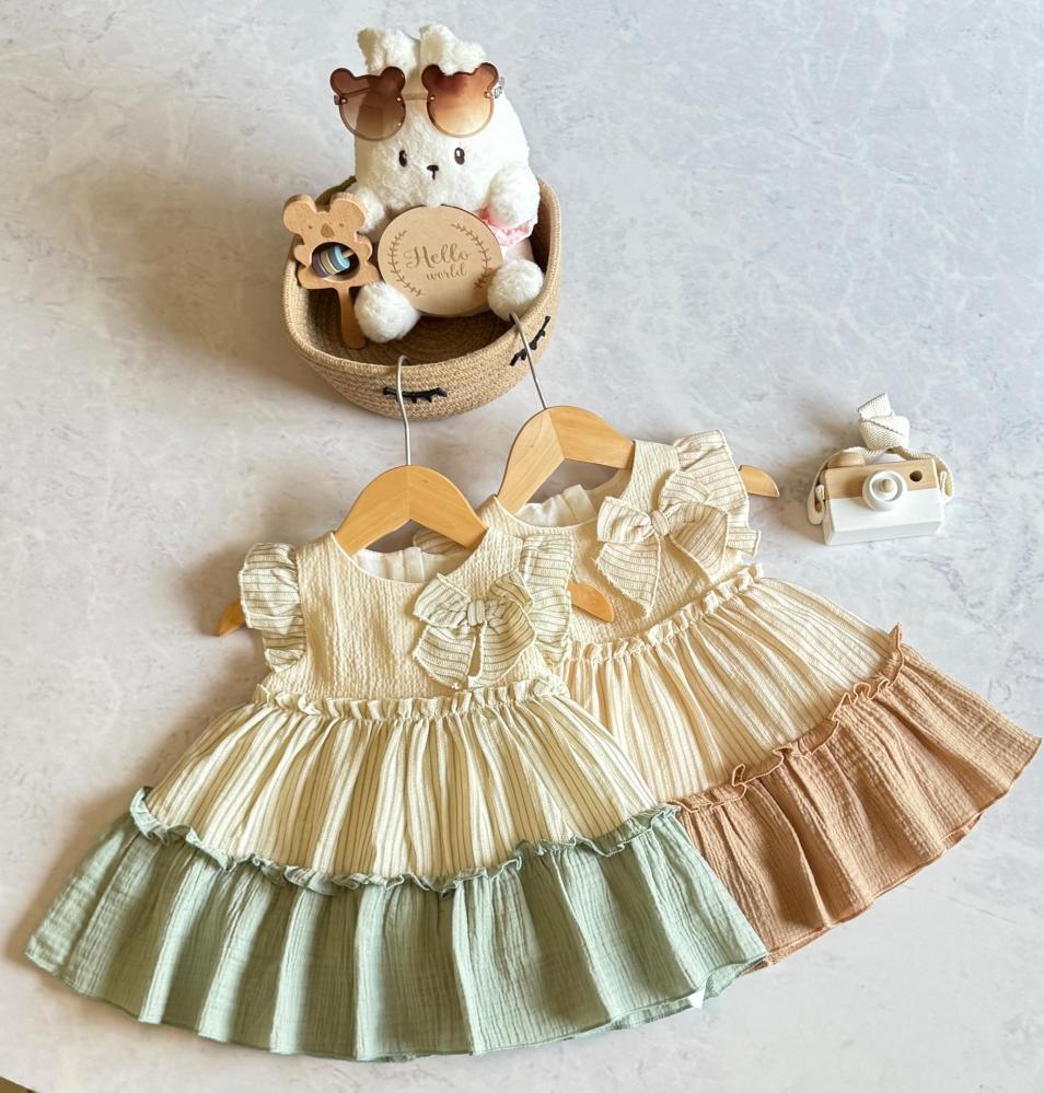 فستان اطفال صيفي بناتي ناعم – تصميم طبقات مزدوجة مع فيونكة جانبية من اجمل فساتين اطفال بناتي
