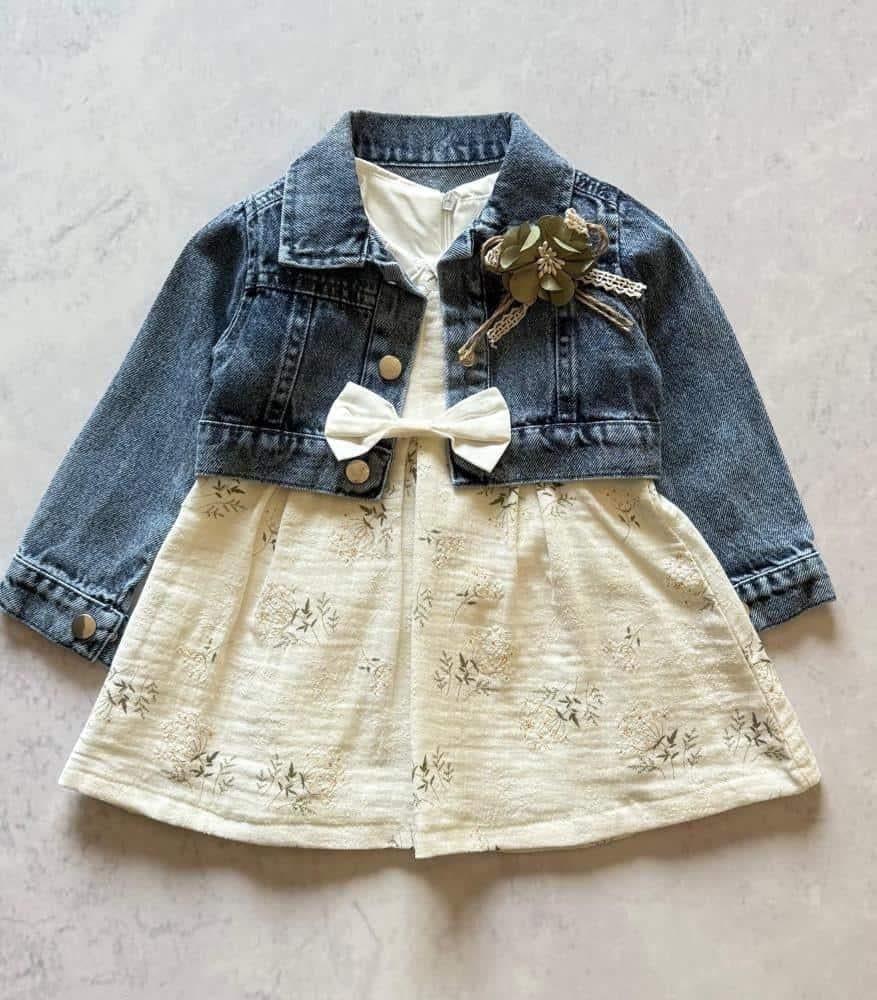 اختاري لطفلتك فستان الأزهار مع جاكيت جينز حيث يعد أحد أبرز اختيارات فساتين رضع للعيد في اجواء الشتاء فالطقم يتكون من فستان كريب قطني خفيف مزين بطبعات زهرية ملونة وجاكيت جينز عملي قابل للإزالة مما يمنح مرونة في تنسيق الإطلالة حسب الطقس.