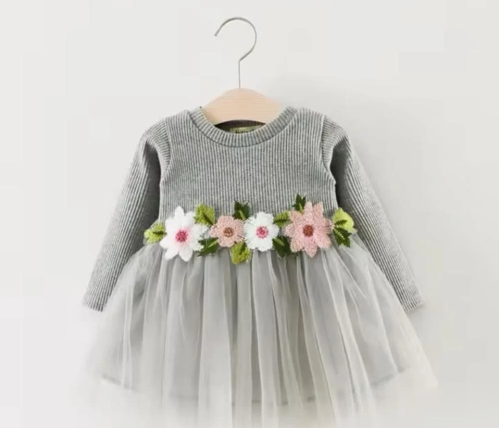 فستان بيبي شتوي تول مزين بزهور