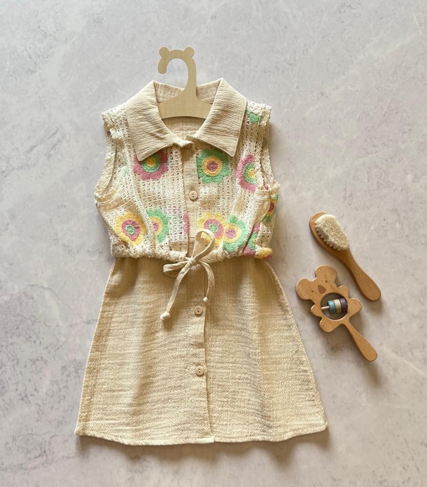 امنحي طفلتك إطلالة ناعمة ومفعمة بالأنوثة مع هذا الفستان القطني البناتي الناعم والذي يتميز بخامته القطنية الخفيفة المثالية للأيام الدافئة، وقصته بدون أكمام التي تمنح حرية في الحركة وراحة طوال اليوم. الجزء العلوي مطرز بزهور ملونة وأزرار أمامية تضيف لمسة من الحيوية والبراءة، بينما يأتي رباط الخصر القابل للتعديل ليبرز القوام بشكل جميل. أما الجزء السفلي بلونه البيج الهادئ فيمنح الفستان طابع كلاسيكي يناسب الإطلالات اليومية والمناسبات البسيطة.