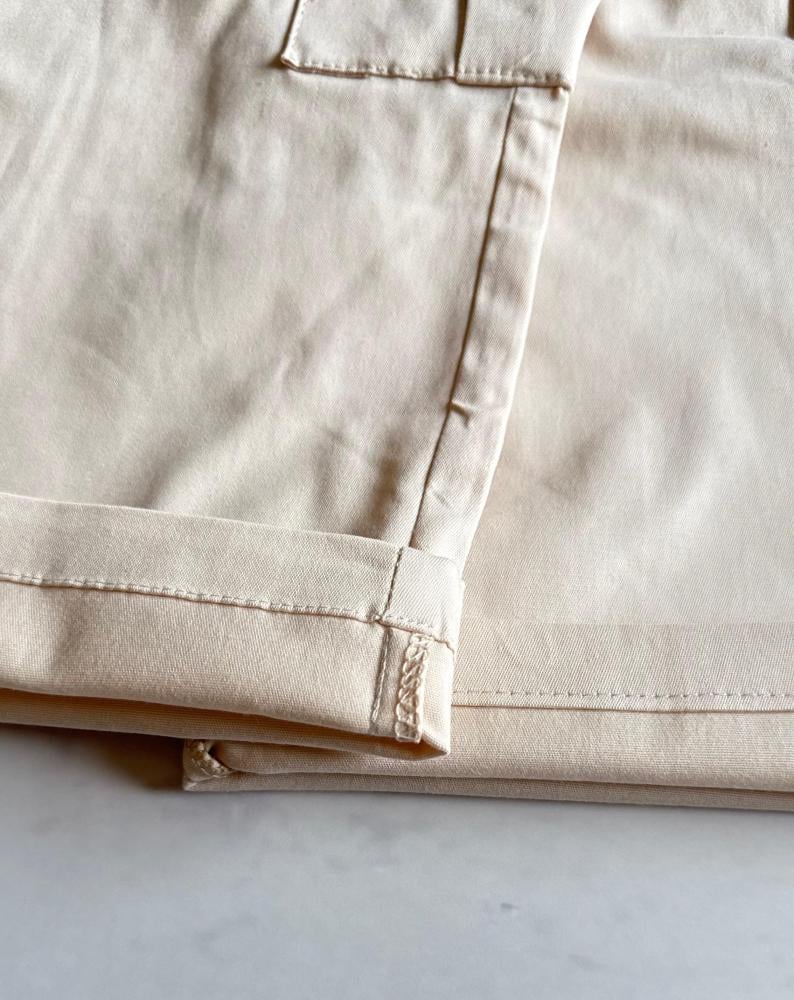 - Pants: Wide-leg cargo pants in ivory color, equipped with large side pockets and a comfortable, practical cut. Ideal for daily movement and stylish outings.